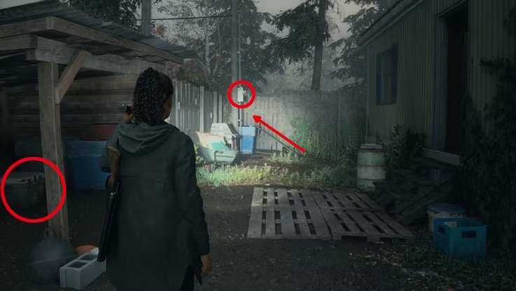 - Примечание: Ключ от тайника Trailer Park находится на электрической коробке, прикрепленной к столбу чуть западнее контейнера, как показано на карте, приведенной выше. Игроки могут получить доступ к нему, подойдя к доске, прислоненной к синему контейнеру.