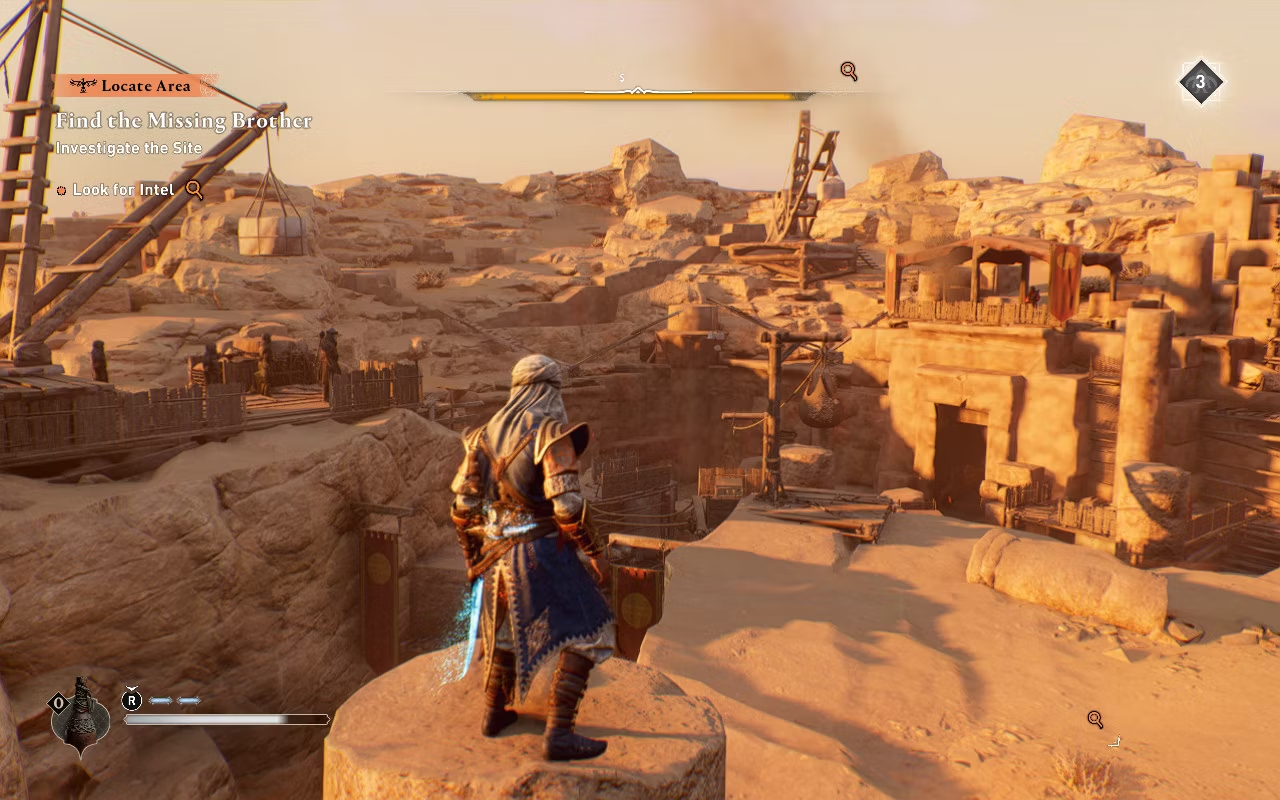 После обнаружения места раскопок игрокам будет предложено исследовать его. Первым шагом в этом исследовании является поиск информации, и игроки могут использовать Энкиду из AC Mirage, чтобы быстро найти диггера, с которым можно поговорить.