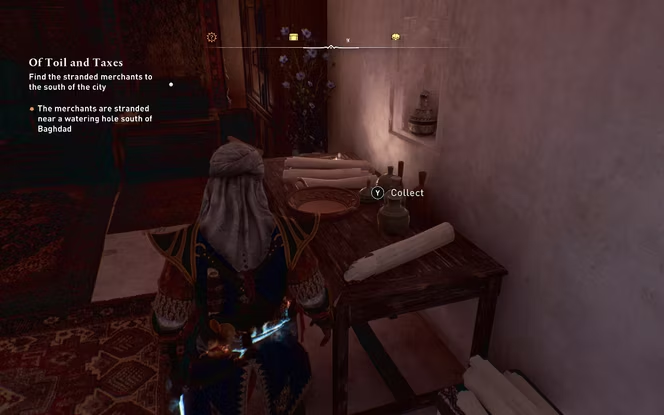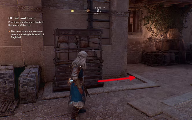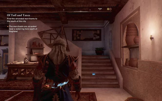 Как только дверь будет отперта, игроки AC Mirage должны пройти через нее и подняться по лестнице справа. Первая страница находится на небольшом столике наверху лестницы.