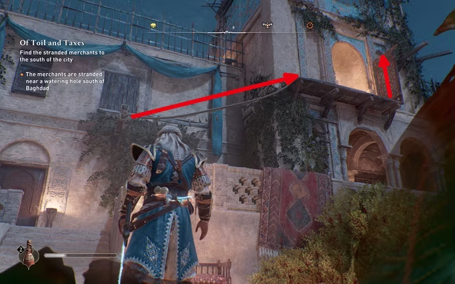 - Поднимитесь по канату, который находится над Аль-Махани, и используйте его, чтобы добраться до вертикальной деревянной планки.