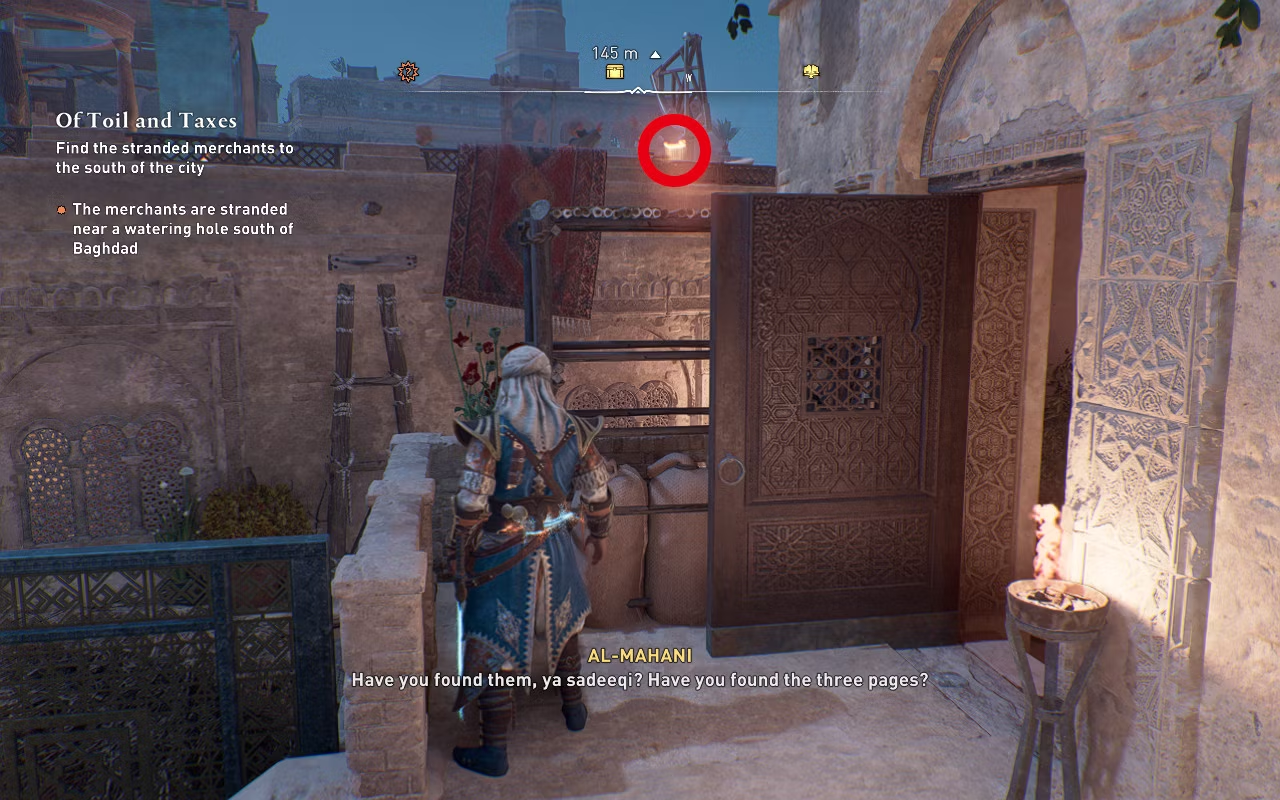 Как только дверь будет отперта, игроки AC Mirage должны пройти через нее и подняться по лестнице справа. Первая страница находится на небольшом столике наверху лестницы.