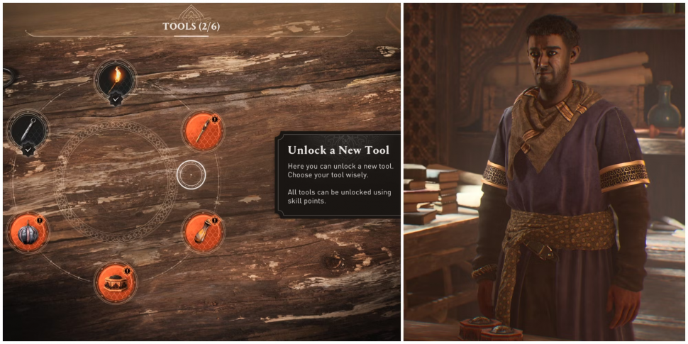 Игроки могут модернизировать свои инструменты, поговорив с Абу Джафаром Мухаммадом. Здесь перечислены улучшения, которые можно открыть по мере прохождения Assassin's Creed Mirage: