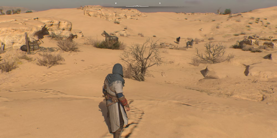 Механика паркура в Assassin's Creed Mirage очень увлекательна, поэтому перемещаться по оживленным участкам с множеством стен и опорных конструкций всегда интересно. Однако есть и такие участки карты, которые совершенно пустынны. В таких случаях лучше всего сесть на верблюда или лошадь и ехать по песку, пока Басим не достигнет цели.