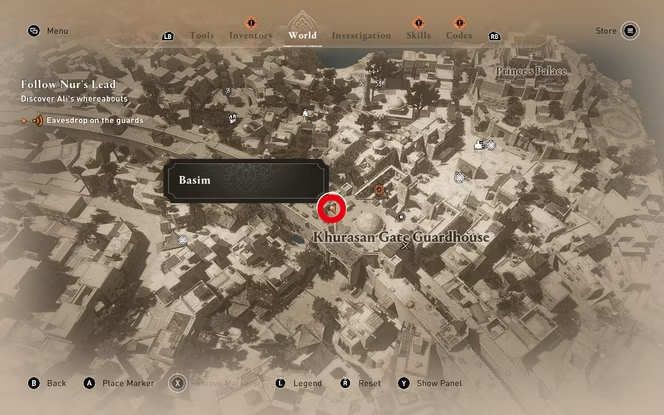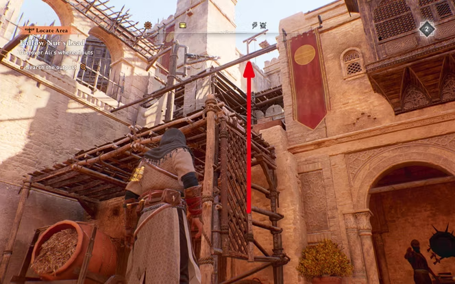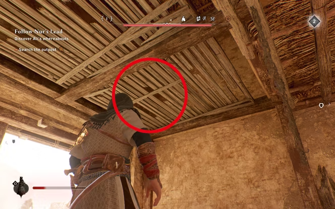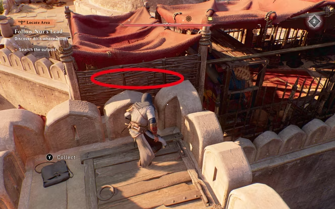 Добравшись до вершины сторожевой заставы Khursan Gate, игроки должны забраться на красную ткань, закрывающую клетку Gear Chests, расположиться на башне в юго-восточном углу и повернуться лицом к клетке. С этой позиции игроки должны использовать оружие ближнего боя в AC Mirage, чтобы разрушить соломенную часть клетки, а затем бросить нож в открывшийся горшок. В результате полка, на которую можно попасть с передней стороны клетки, станет подвижной, и игрок получит доступ к находящемуся внутри сундуку.