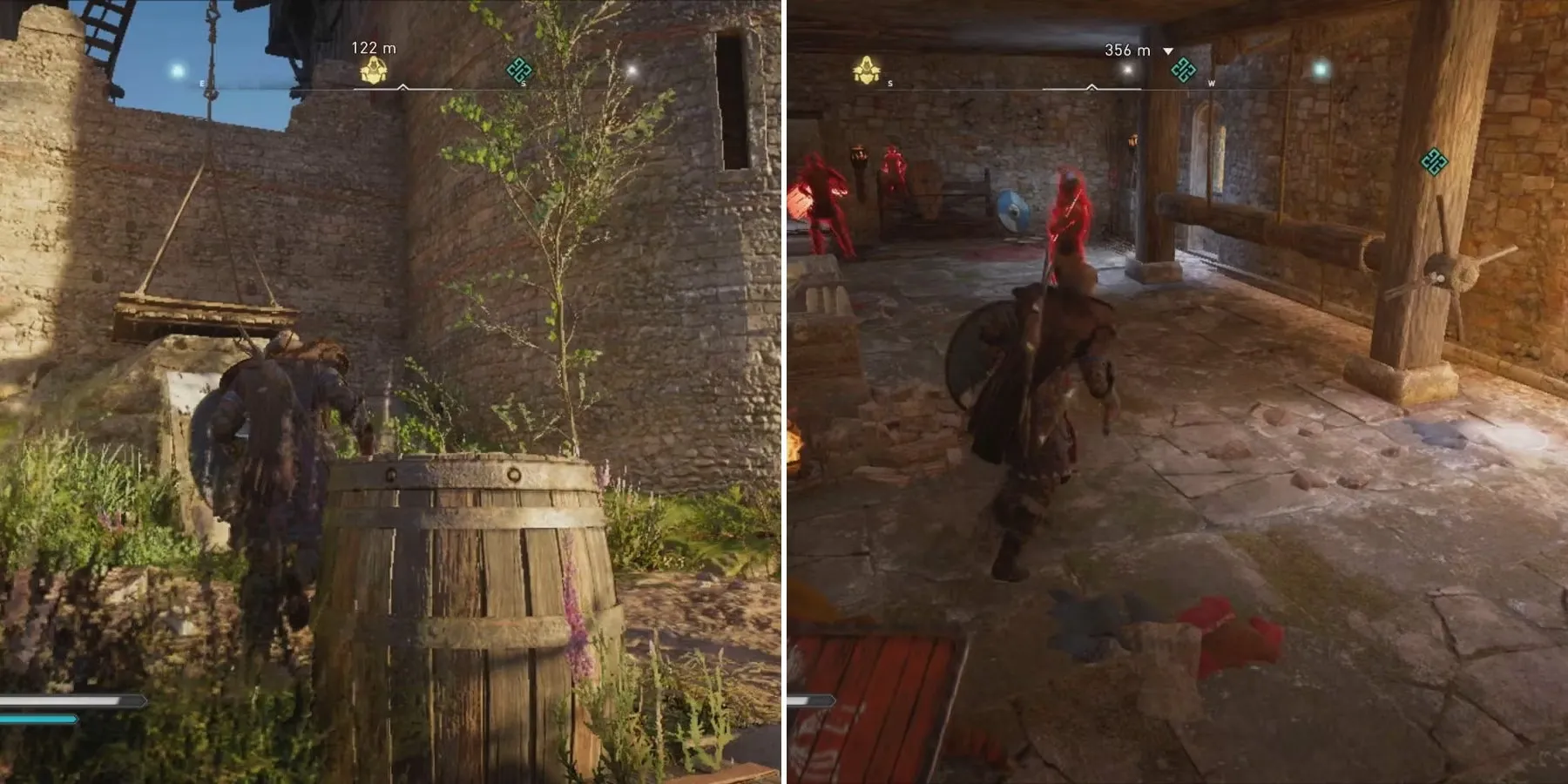 Первая линия обороны замка Cyne Belle - разводной мост, удерживаемый парой цепей. На вершине моста есть разрушаемое звено с каждой стороны, но это место охраняет враг-знаменосец. Если использовать лук Эйвора и подстрелить оба звена, разводной мост рухнет и откроется следующая часть вторжения.