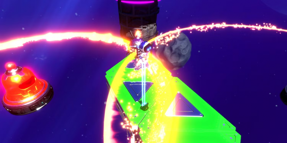 Большой вращающийся шар может быть невероятно сложным для навигации, если игроки пытаются промчаться мимо него, но при правильном выборе времени это не так уж и сложно. Нужно приземлиться на другой стороне сразу после того, как мяч пролетел мимо них, и тогда у игрока будет полный цикл, чтобы добраться до врага и использовать реактивные снаряды Астро на его голове, чтобы уничтожить его.