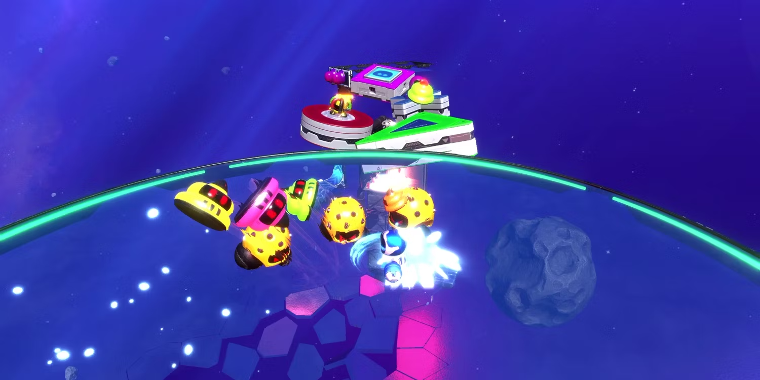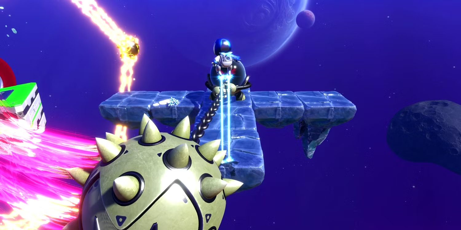 Большой вращающийся шар может быть невероятно сложным для навигации, если игроки пытаются промчаться мимо него, но при правильном выборе времени это не так уж и сложно. Нужно приземлиться на другой стороне сразу после того, как мяч пролетел мимо них, и тогда у игрока будет полный цикл, чтобы добраться до врага и использовать реактивные снаряды Астро на его голове, чтобы уничтожить его.