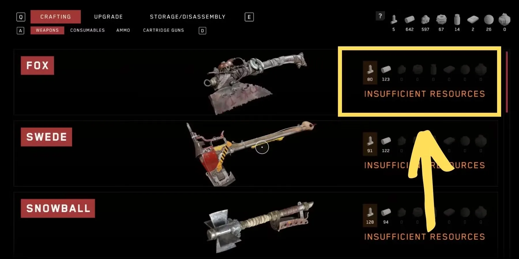 Используйте чертежи для изготовления оружия, патронов и модификаторов (улучшений оружия). Для этого посетите любой торговый автомат NORA в безопасных комнатах и откройте меню создания. Но учтите, что для каждого чертежа требуются разные ресурсы или ингредиенты. Игроки могут создавать только те, на которых написано "Достаточно ресурсов".
