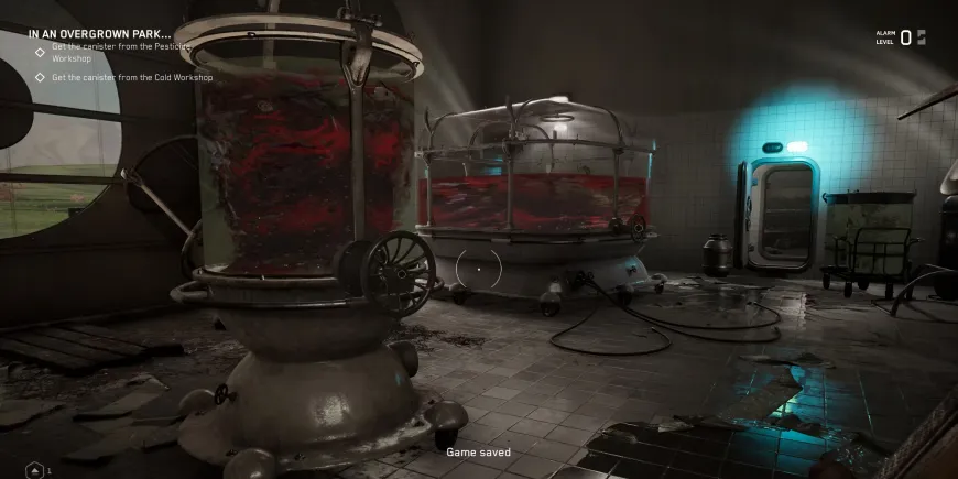 Если головоломка выполнена правильно, все животные, кроме коровы, в пустом резервуаре должны превратиться в красную полимерную слизь. Это откроет дверь в мастерскую пестицидов. Обязательно сохранитесь в маленькой комнате, так как в следующей части будет много боев. Если у вас мало патронов или здоровья, вернитесь к торговому автомату.