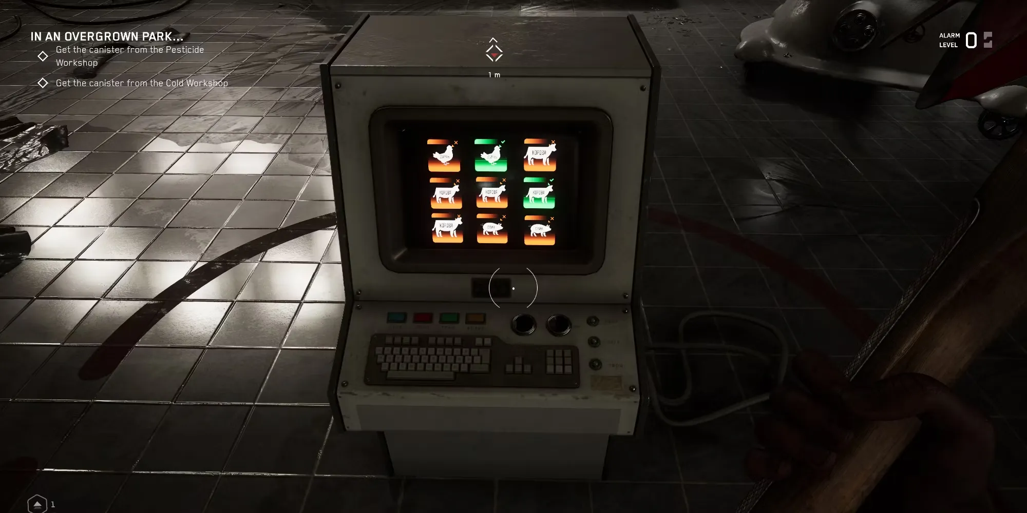 Если головоломка выполнена правильно, все животные, кроме коровы, в пустом резервуаре должны превратиться в красную полимерную слизь. Это откроет дверь в мастерскую пестицидов. Обязательно сохранитесь в маленькой комнате, так как в следующей части будет много боев. Если у вас мало патронов или здоровья, вернитесь к торговому автомату.