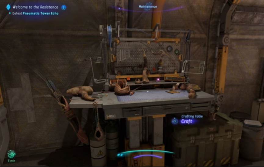Чтобы создать новое оружие в Avatar: Frontiers of Pandora, вам нужно найти стол для ремесла в различных местах карты. Самый ранний из них вы найдете в первом поселении на вершине водопада, как показано на изображении ниже.