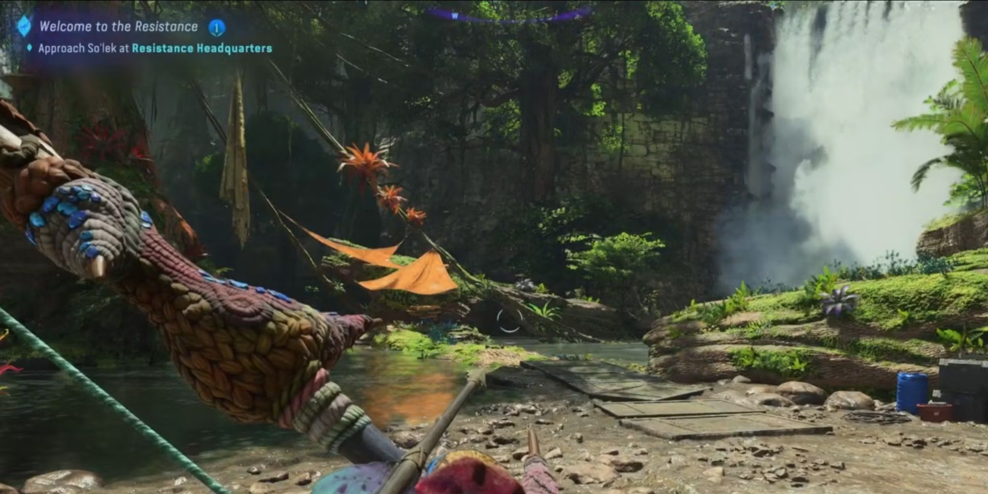 Игра сообщит вам, что штаб-квартира Сопротивления находится рядом с водопадом, но не скажет, где этот водопад. Вы можете обратиться к своей карте, чтобы посмотреть, где он находится, но это все равно мало чем поможет. Однако если вы отправитесь на северо-запад от места встречи с Со'леком, то в конце концов услышите и увидите водопад. Справа от водопада вы найдете предметы, известные как подъемные лозы. Как только вы подойдете к одному из них, вам будет предложено использовать его. Как только вы подниметесь по первой подъемной лиане, игра предложит вам сбить другую подъемную лиану с помощью лука и стрел. Как только вы подниметесь по ней, все, что вам нужно сделать, - это следовать по уже проложенному пути. Вы увидите желтовато-оранжевые палатки, которые означают присутствие Сопротивления в этом районе. Когда вы подойдете к палаткам достаточно близко, перед вами появится всплывающее окно с надписью "Штаб Сопротивления". Оттуда вам нужно войти в главные двери и найти Со'лека.