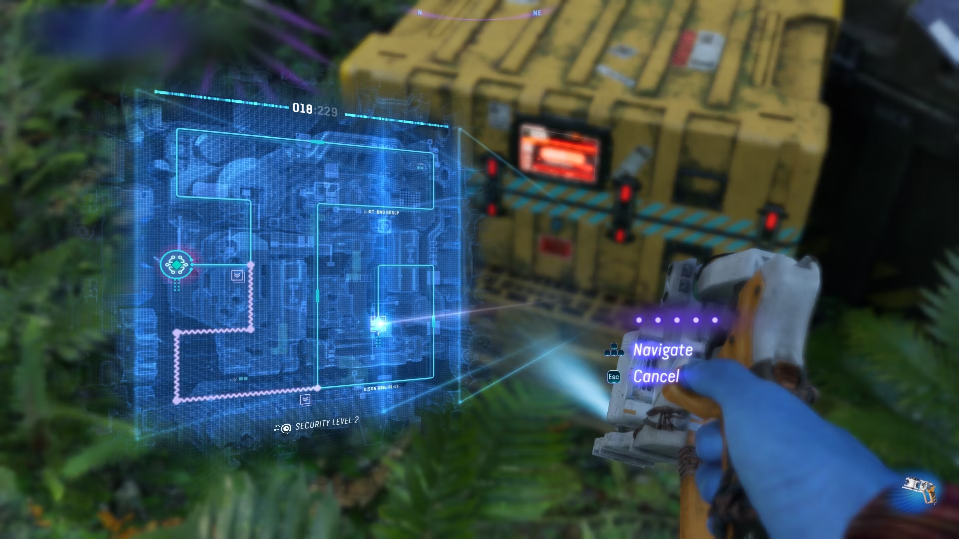 С SID в руках вернитесь на заправочную станцию к юго-востоку от штаба Сопротивления. Ищите желтый сундук возле заброшенного грузовика или воспользуйтесь чувствами На'ви, чтобы его обнаружить.