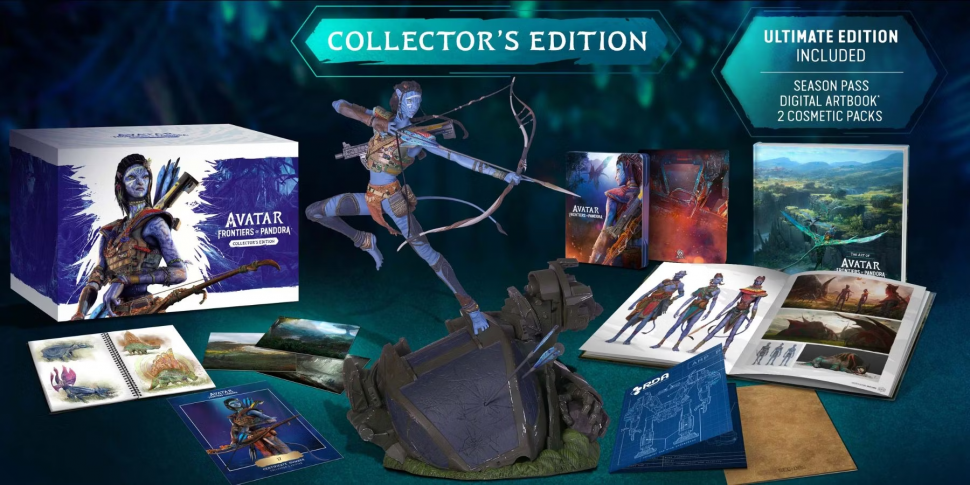 Специальный комплект Avatar: Frontiers of Pandora включает в себя все цифровые материалы Ultimate Edition, а также тематические физические подарки. Среди них - стилбук, артбук, блокнот, блупринт, фигурка, литография и сертификат подлинности.