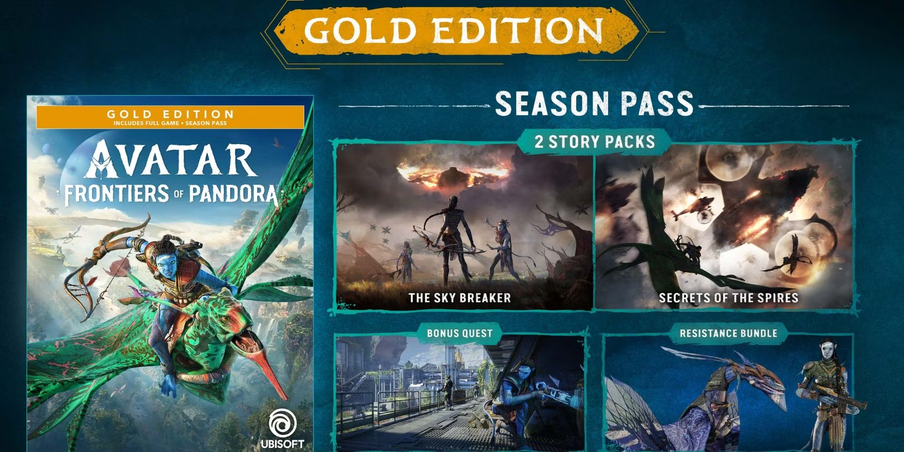 Золотое издание поставляется с сезонным пропуском Avatar: Frontiers of Pandora. Он включает в себя дополнительный квест при запуске игры, два DLC и набор Resistance.