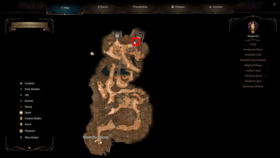Попасть в подвал Жентарима можно через люк в здании на северо-западе Waukeen's Rest (X:-127 Y:617). Попав в подвал, игроки должны взаимодействовать со Шкафом в X:382 Y:-260, чтобы обнаружить скрытую лестницу, которая ведет в убежище Жентарима. В убежище игроки должны пройти на север к железным воротам по адресу X:304 Y:-177 и взломать замок. За воротами находится сундук с ловушкой, обезвредив которую и открыв контейнер отмычкой, вы найдете адское железо.