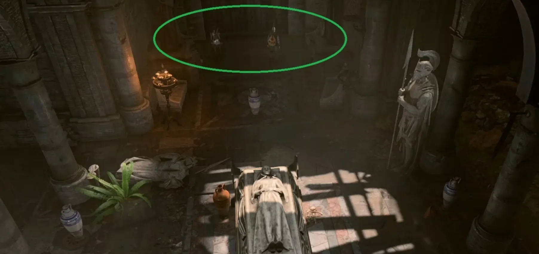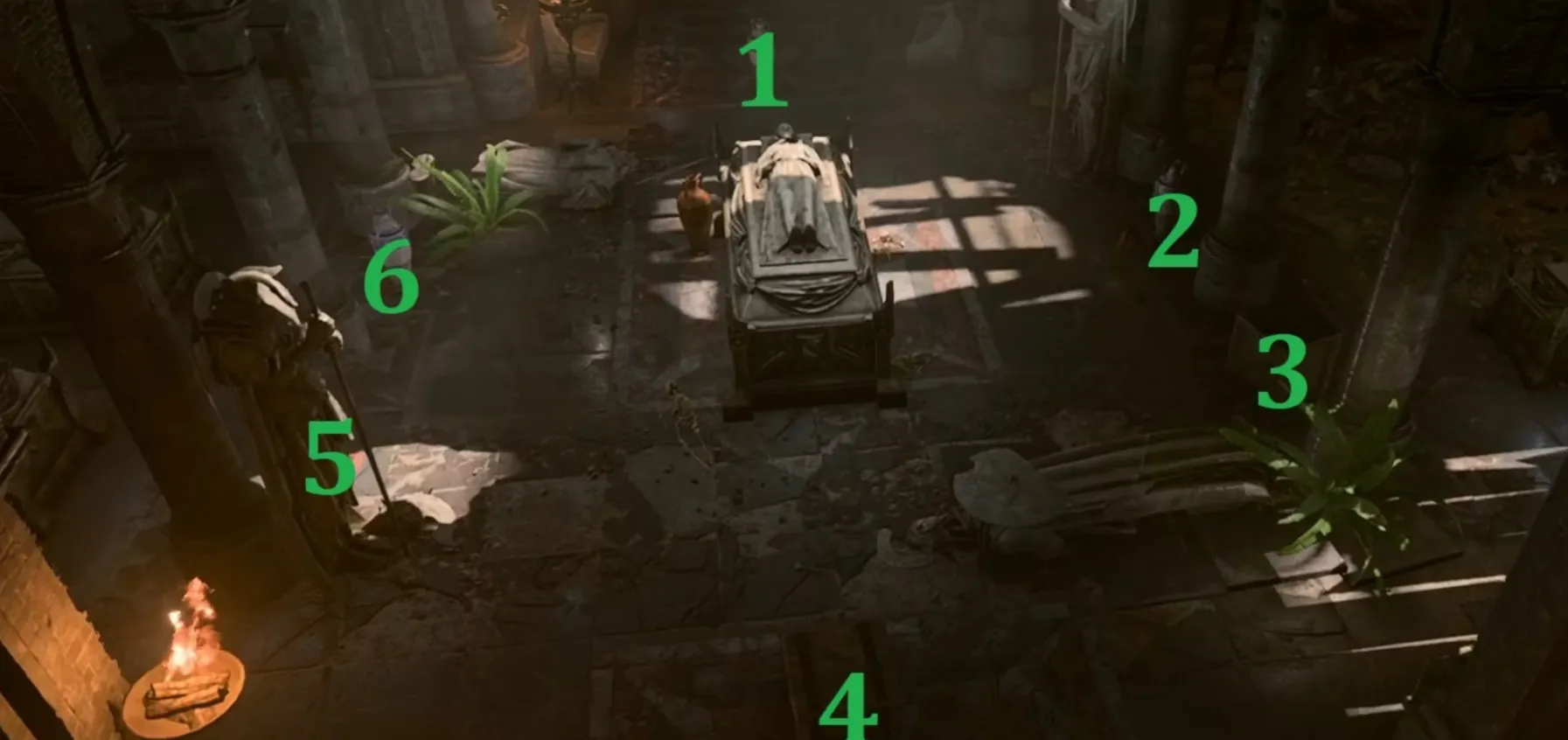 Первым шагом, независимо от того, играете ли вы с друзьями или в одиночку, является разграбление всего остального в комнате, кроме Саркофага. Затем нужно, чтобы все члены партии, кроме одного, ждали у двери, ведущей в следующую комнату. Не ждите у входной двери.