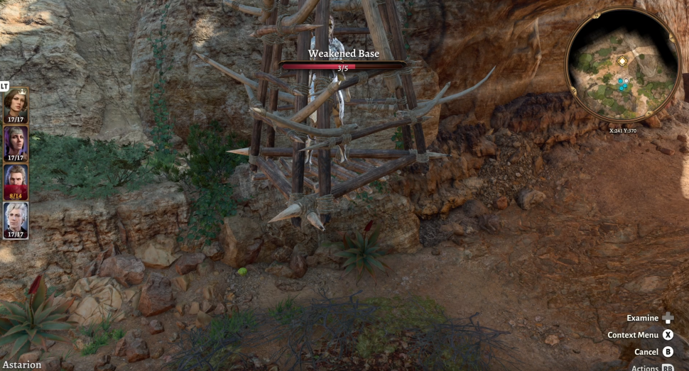 Если вы успешно отбились от тифлингов без помощи Лаэ'зель или убедили их уйти сами, вам придется освободить ее самостоятельно. На земле возле клетки лежит короткий лук, если у вас нет возможности использовать дистанционную атаку. Подберите его или используйте Астарион, чтобы выстрелить в ослабленное основание клетки. Возможно, вам придется забраться на соседний уступ, чтобы прицелиться в нее. Выпустите несколько стрел, и она сломается. После этого вы сможете решить, нужна ли вам Лаэ'зель в вашей партии.