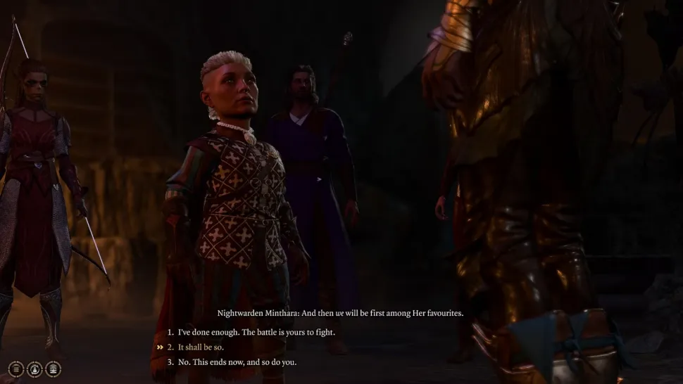 Дроу можно найти в небольшой комнате в северо-восточном углу Shattered Sanctum. Игрокам следует поинтересоваться, как она охотится, и направить ее в сторону Рощи друидов Baldur's Gate 3. После того как игрок согласится тайно проникнуть на цель Минтары, она выйдет из комнаты по деревянному мостику. Чтобы заставить деревянную опору моста разрушиться, Минтара должна использовать атаку дальнего боя, а чтобы облегчить этот процесс, можно воспользоваться пошаговым режимом.