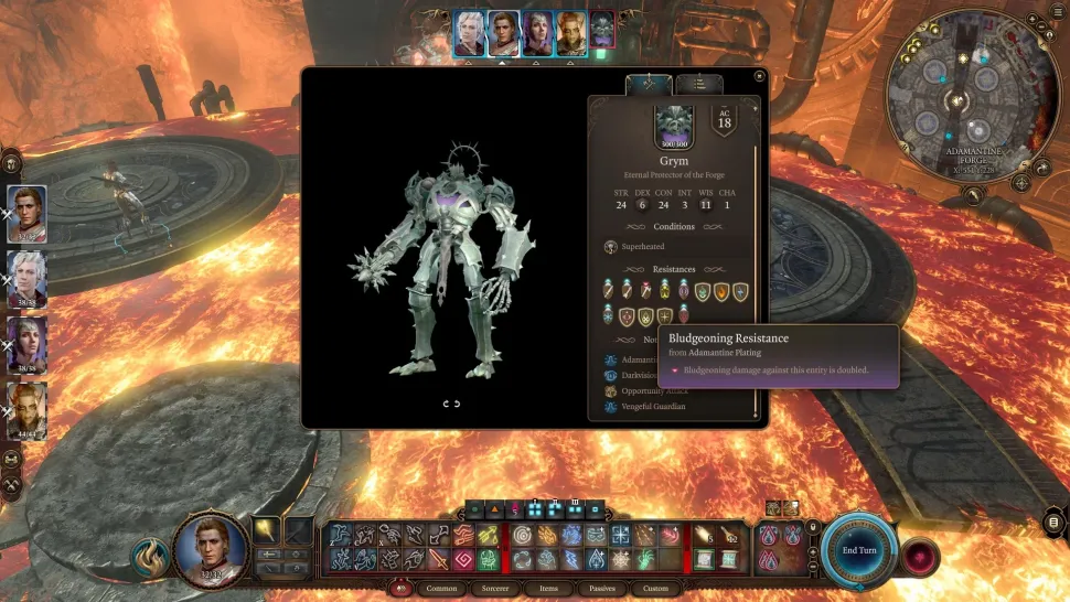 Например, существо, изображенное на рисунке выше, Грим, имеет особую реакцию на каждый тип урона в игре. Он невосприимчив к огню, молнии, некротическому, психическому, ядовитому и лучевому урону, сопротивляется колющему, пронзающему, кислотному, грозовому, холодному и силовому урону, а также уязвим к рубящему повреждению.