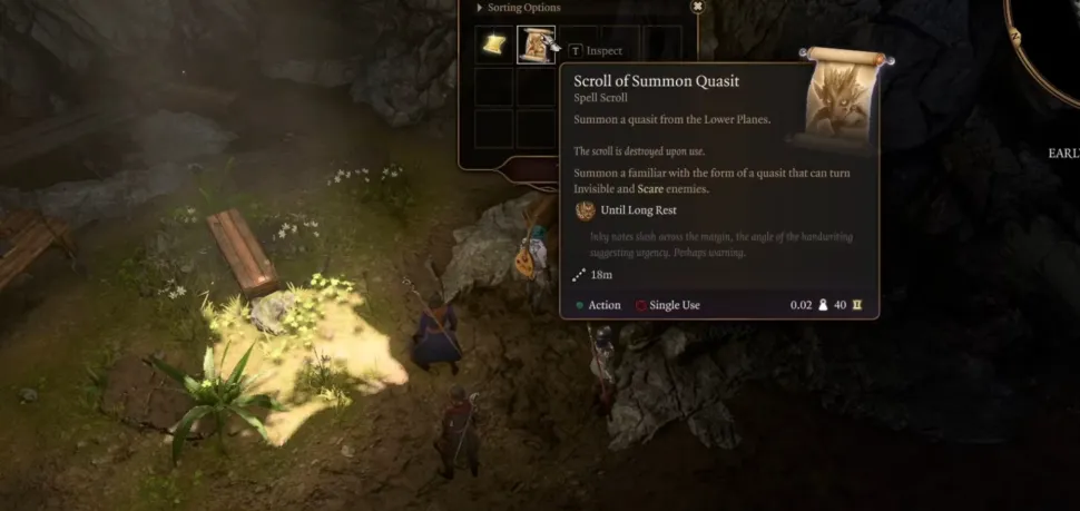 После прохождения через отверстие в книжном шкафу вас ждет необязательная битва. В шкафу Mouldering Caskets есть сокровища, а также враги, которые пробуждают врагов в других шкафах. К счастью, бой не слишком сложный. При разграблении этих шкатулок игрок найдет свиток Summon Quasit. Не сохраняйте его, поскольку квазит не может рассказать ничего интересного за пределами этой области. Используйте его и получите некоторые знания об этой местности.