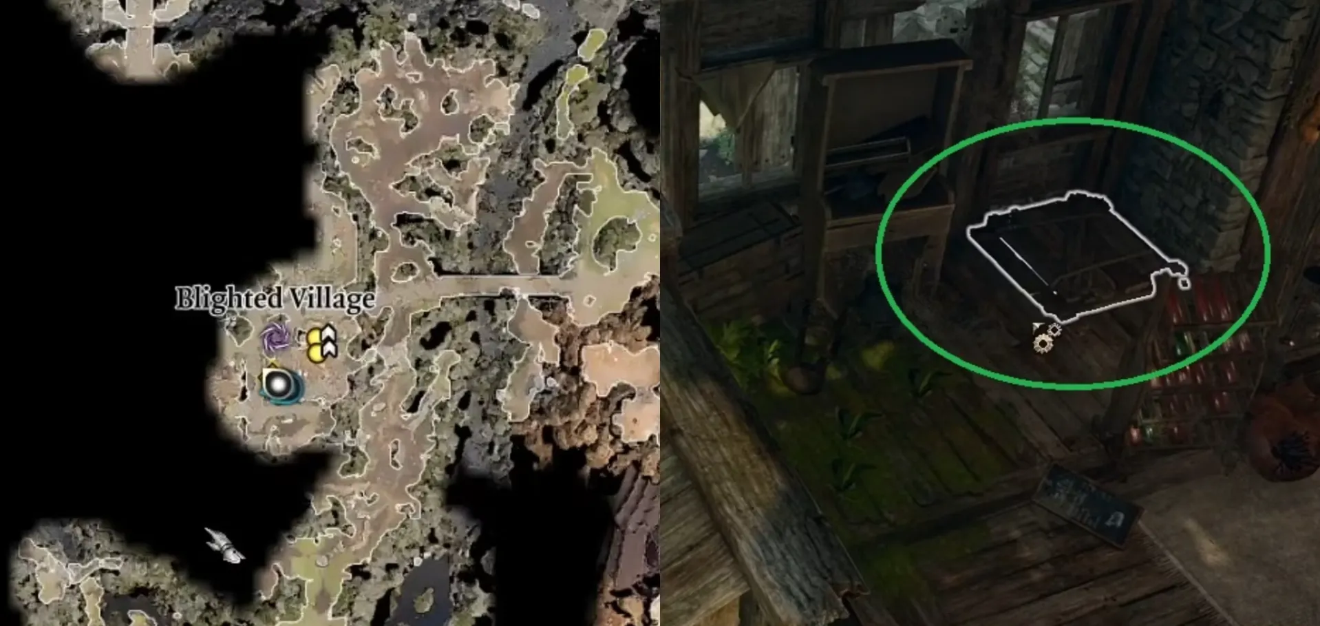 - Войдите в дверь подвала в доме к югу от путевой точки Blighted Village.