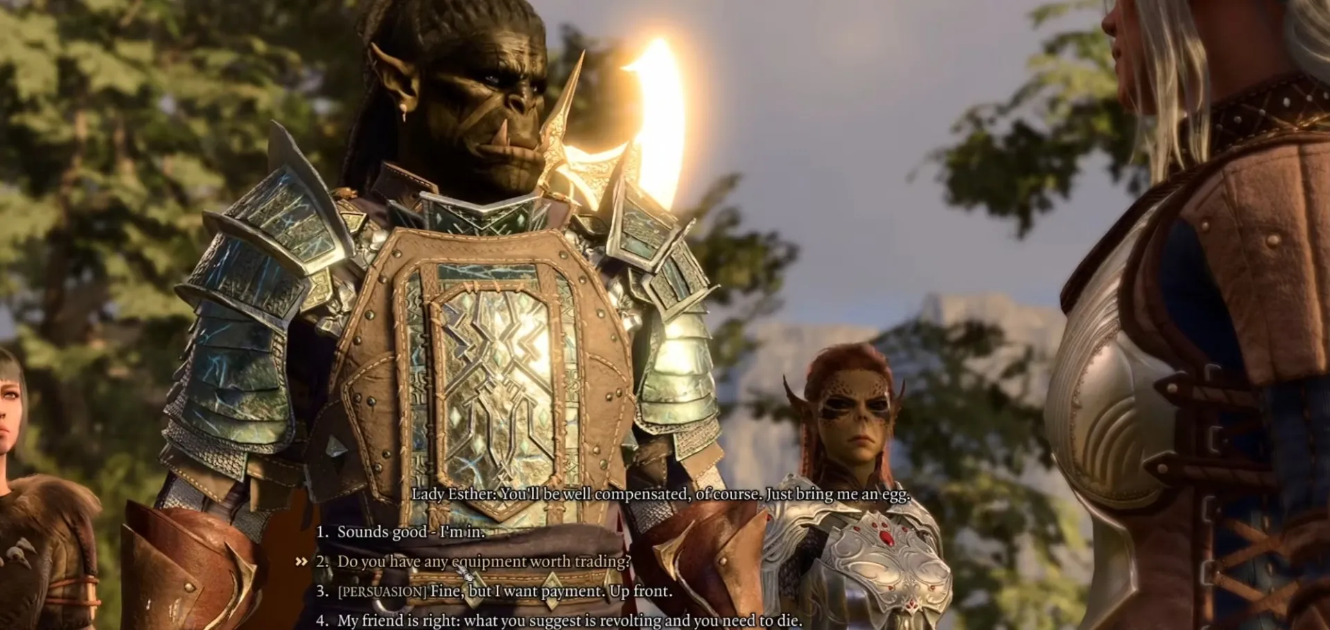 Когда леди Эстер просит яйцо гитха, она просит ребенка разумного существа. Изначально игроки могут не согласиться с таким выбором, хотя она и говорит, что этот эксперимент может привести к доказательству того, что гиты не являются жестокими по своей природе. Baldur's Gate 3 обеспечивает запоминающийся результат при любом выборе.