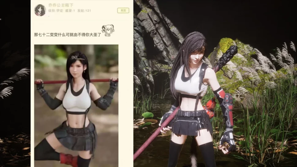 Final Fantasy 7 Remake - один из претендентов на GOTY, как и Black Myth Wukong. С помощью мода «Play as Tifa» вы можете перенести лучшую часть FF7, Тифу, в Black Myth Wukong.