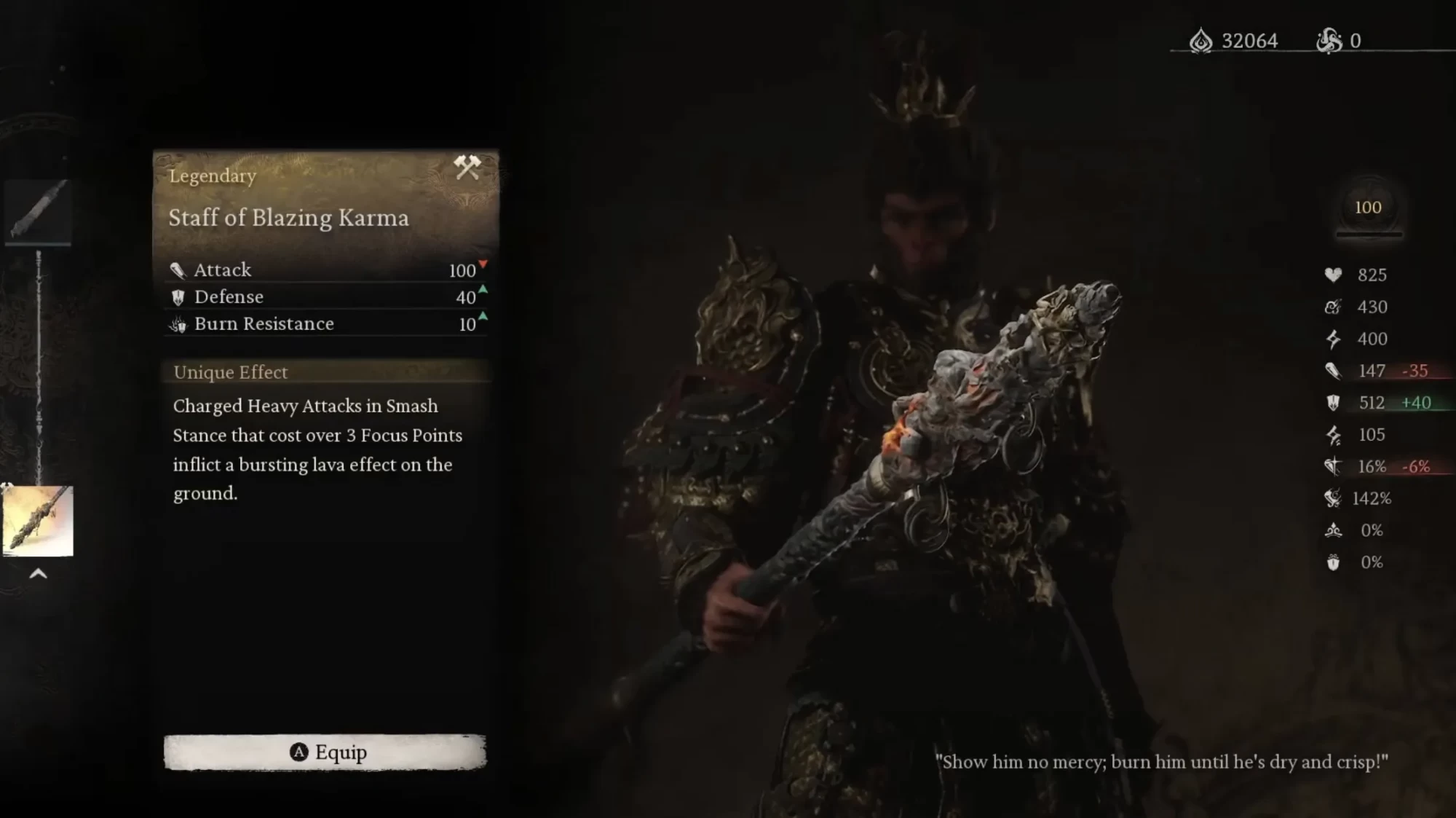 Посох «Пылающая карма» - лучший выбор для билда в Стойке Сокрушения. Когда вы используете заряженную тяжелую атаку, превышающую три очка фокуса, находясь в Стойке Разгрома, землю покроет эффект растекающейся лавы.
