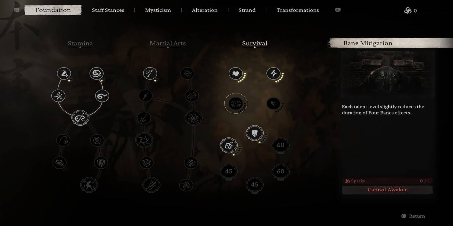 Одним из самых важных деревьев навыков в Black Myth: Wukong является дерево навыков выживания, в которое можно вкладывать средства для увеличения базовых статов игрока. Хотя существуют и другие способы повышения базовых показателей, например, использование ядер разума, игроки должны стремиться значительно повысить большинство своих базовых показателей в самом начале игры, поскольку они будут служить основой для вашего билда.