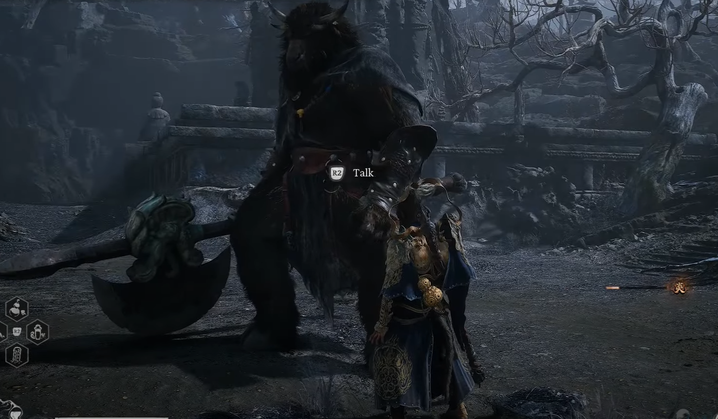 Глава 5 > Янтарный лес > Пепельный перевал I: Вернитесь туда, где вы впервые встретили Быка, исчерпав все диалоги. Теперь он переместится в то место, где вы победили Багрово-серебристую телегу после Изумрудного зала. (Если его больше нет на первом месте, перейдите к шагам 4-6)