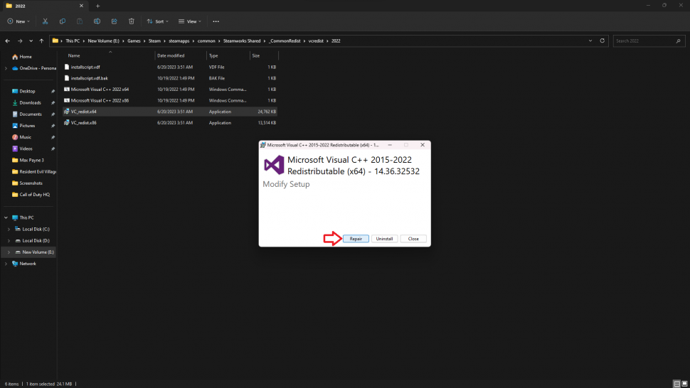 - Установите или восстановите Visual C++ Redistributables и перезагрузите компьютер.