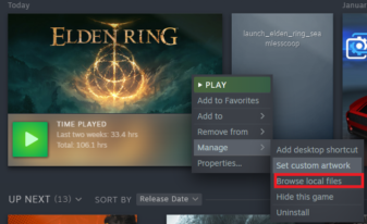 - Щелкните правой кнопкой мыши Black Myth: Wukong в библиотеке Steam > Управление > Обзор локальных файлов.