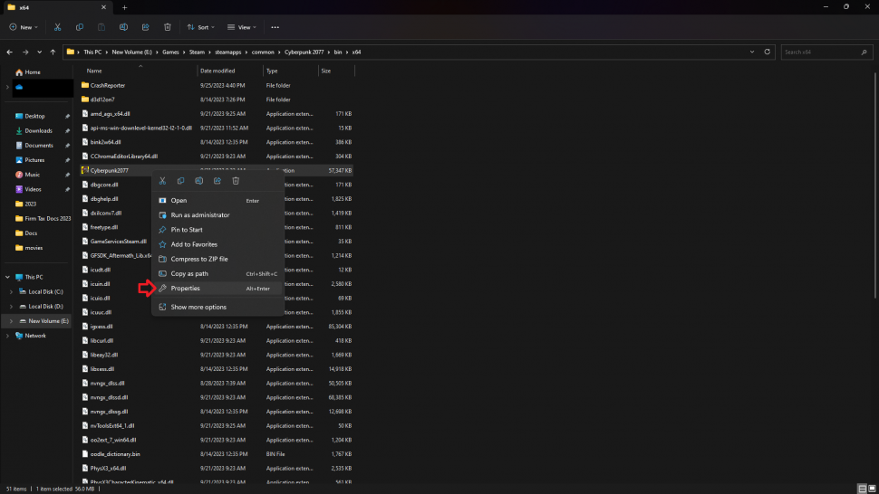 - Щелкните правой кнопкой мыши исполняемый файл и выберите свойства.