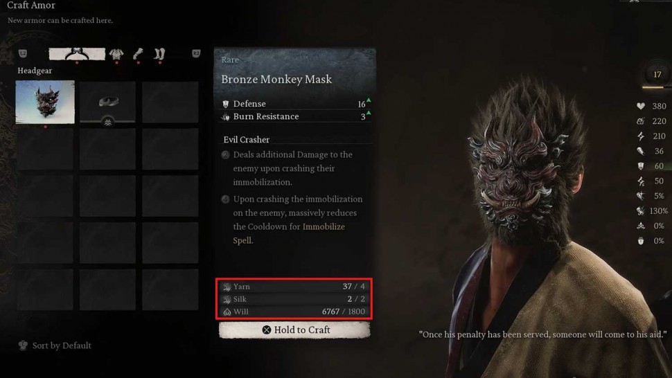 Броня, несомненно, необходима в Black Myth: Wukong, так как она защищает игрока от получаемого урона. Доспехи в игре в основном крафтятся, но для того, чтобы разблокировать их в качестве предмета для крафтинга, необходимо выполнить определенное условие.