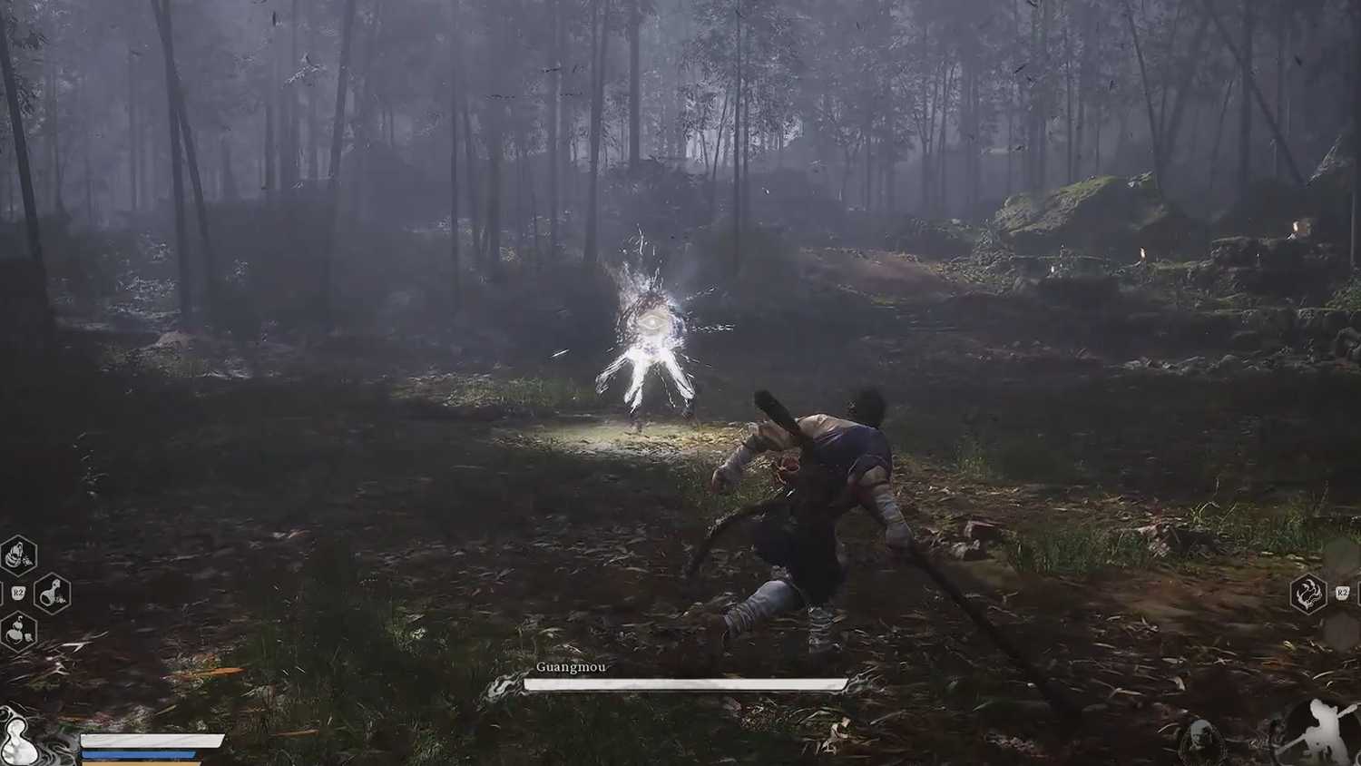 Благодаря увеличенной скорости и разнообразию атак Гуанмоу - более сложный противник, чем те боссы, с которыми вы сталкивались до сих пор. Гуанму начинает каждый бой с «Духовного натиска», когда он призывает духовные шары, летящие прямо в вас. Вы можете отклонять эти орбы, вращая посох или постоянно уклоняясь от них. По мере продолжения боя он станет более изобретательным в своих атаках и будет использовать свой веер, чтобы вызвать Вихрь ветра или Духа ветра, чтобы сбить вас с ног.