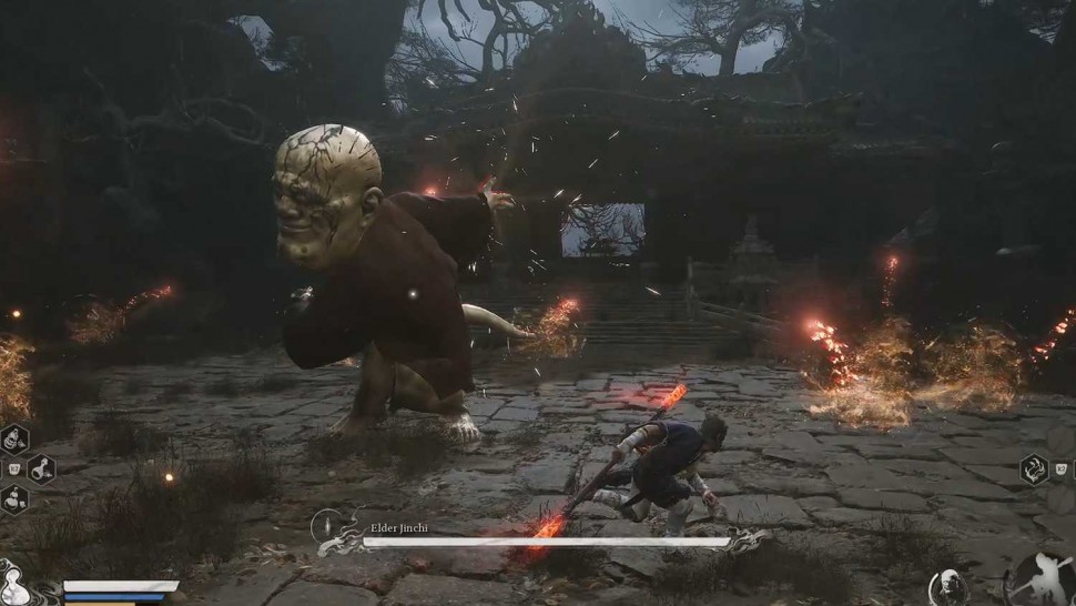 Прежде чем сразиться с Королем Черного Ветра, вам следует разобраться с дополнительным боссом - Старейшиной Джинчи. Вы можете разблокировать этого секретного босса, позвонив во все три колокольчика, разбросанные по карте в главе 1. Победив старейшину Дзинчи, вы получите Огнеупорную мантию - сосуд, пассивно восстанавливающий фокус, и Молитвенные четки Гуаньинь - экипировку, повышающую защиту на 10 единиц.