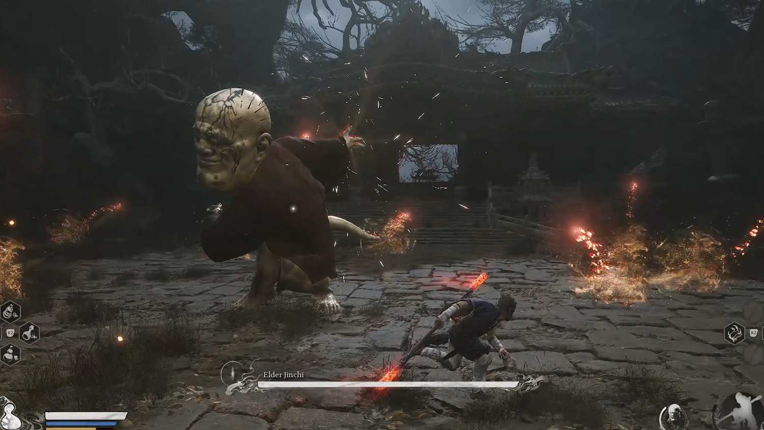 Прежде чем сразиться с Королем Черного Ветра, вам следует разобраться с дополнительным боссом - Старейшиной Джинчи. Вы можете разблокировать этого секретного босса, позвонив во все три колокольчика, разбросанные по карте в главе 1. Победив старейшину Дзинчи, вы получите Огнеупорную мантию - сосуд, пассивно восстанавливающий фокус, и Молитвенные четки Гуаньинь - экипировку, повышающую защиту на 10 единиц.
