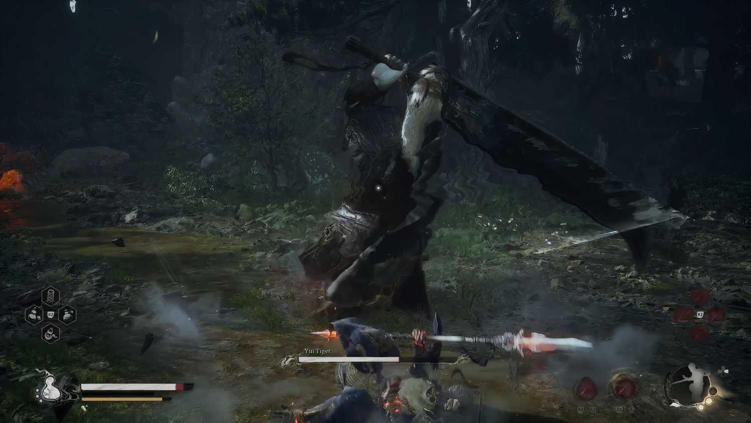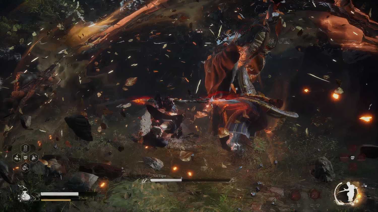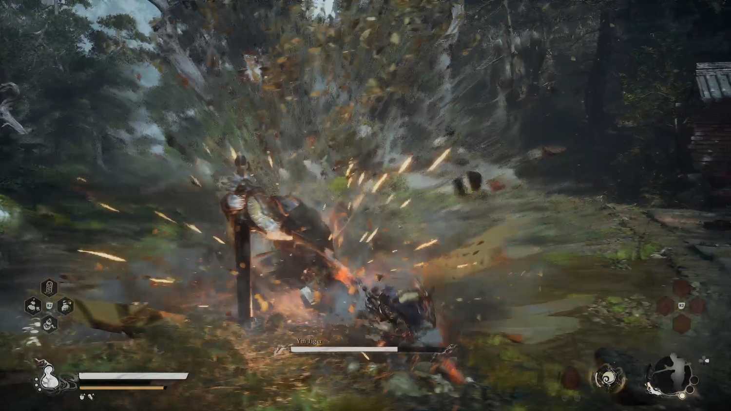 В начале боя Инь Тигр начнет точить свой меч, а если вы мгновенно приблизитесь к нему, то он перейдет в стойку отклонения. В этой стойке тигр Инь получает меньше урона и начинает заряжать Фокус на своем мече, который он может использовать для нанесения смертельной атаки.