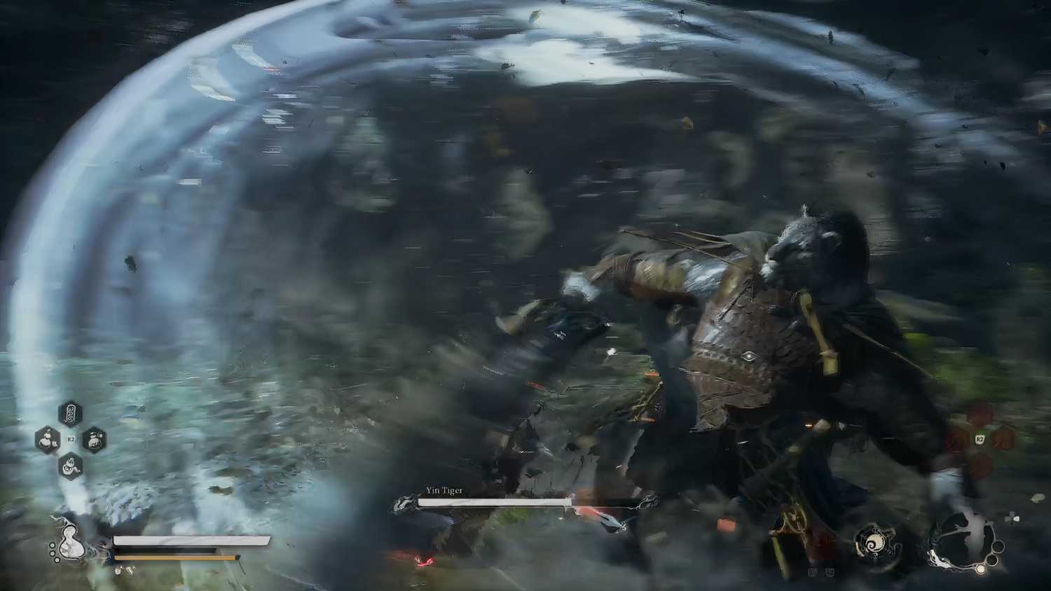 Потеряв 10-20 % здоровья, тигр Инь начнет исчезать в воздухе и наносить последующие атаки, от которых вам нужно будет только уклоняться.
