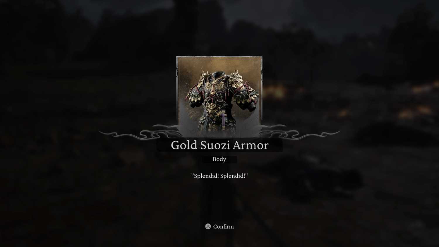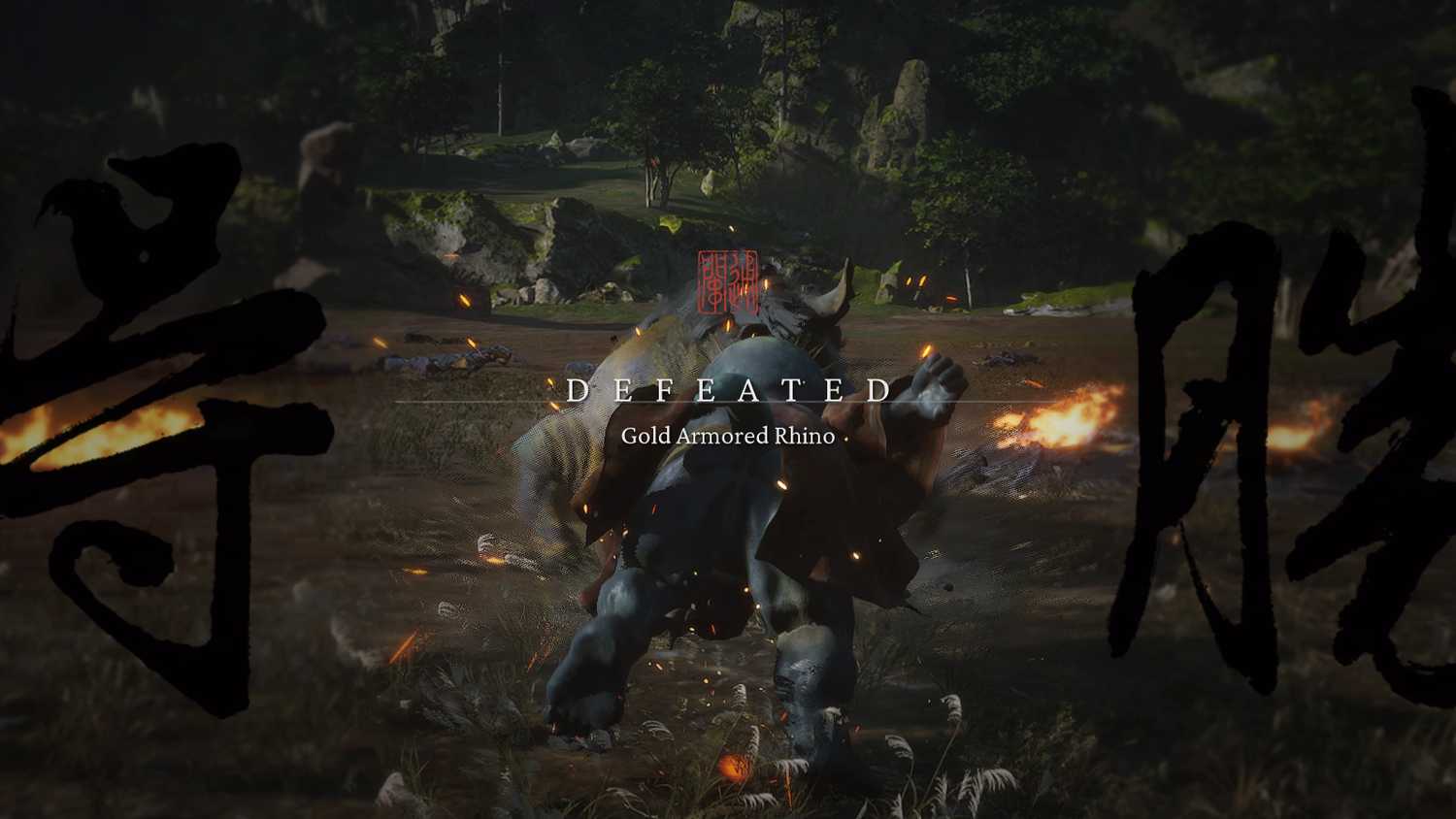 Через некоторое время рог восстановится, и вам придется повторять ту же процедуру, пока он не будет побежден. Кроме того, игроки могут использовать атаку духа Блуждающего Вождя, чтобы отломить рог. После победы над Золотым бронированным носорогом игроки получат Золотые доспехи Суози, которые раньше носил Сунь Вуконг.