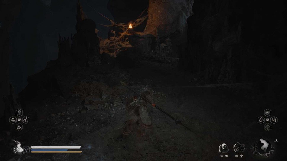 Золотой карп - это предмет, который выпадает из босса в четвертой главе «Паутинной лощины». Сначала вам нужно добраться до Утеса Забвения и победить босса Правая рука Будды. После боя перейдите через мост, дважды опуститесь на правую сторону и идите по тропинке, пока не дойдете до места, где с каждой стороны есть тропинка. Направляйтесь налево, перейдите по веревочному мосту и пройдите мимо висящих коконов.