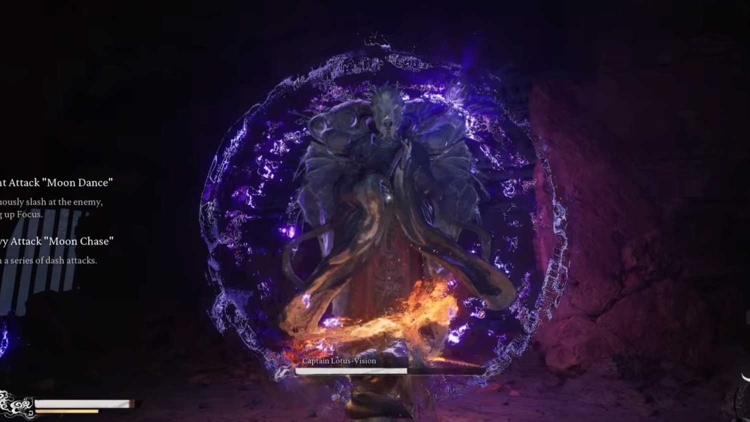 Игрокам нужно добраться до святилища хранителя Верхней пагоды. Отсюда нужно зайти внутрь и с помощью камеры посмотреть на землю. На земле они должны увидеть множество статуй. Осторожно опуститесь вниз и подойдите к большому существу на арене. Вскоре начнется битва с капитаном Лотосом- Голосом. Враг в основном стреляет лазерными лучами и снарядами, поэтому вам придется много уклоняться. Используйте всевозможные заклинания, и капитан Лотос-Голос превратится в пережиток прошлого. Победив его, поглотите дух, а затем отправляйтесь в святилище хранителя Нижней пагоды. Вернитесь к тому месту, откуда вы начали, и вы должны заметить, что фиолетовые печати исчезли. Откройте дверь рядом с вашей камерой, справа должно быть тело. Взаимодействуйте с ним, чтобы получить трансформацию «Пепельный сон».