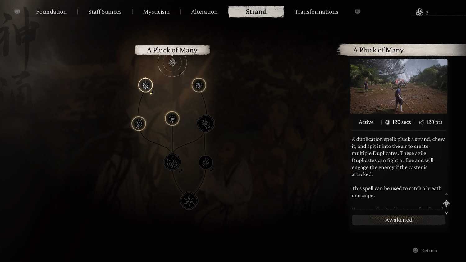 Последнее дерево навыков называется Strand. Чтобы открыть его, игроки должны дойти до второй главы и найти путь к святилищу Ветряных Врат. После короткой сцены игроки получат способность под названием «Множество ударов». Это заклинание позволит вам создать несколько копий персонажа, и они помогут вам справиться с сильным врагом.