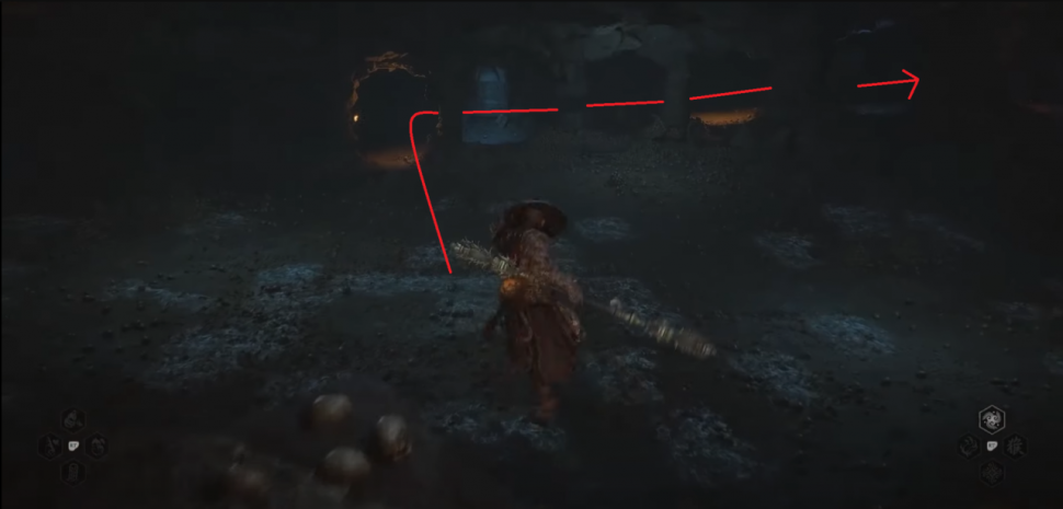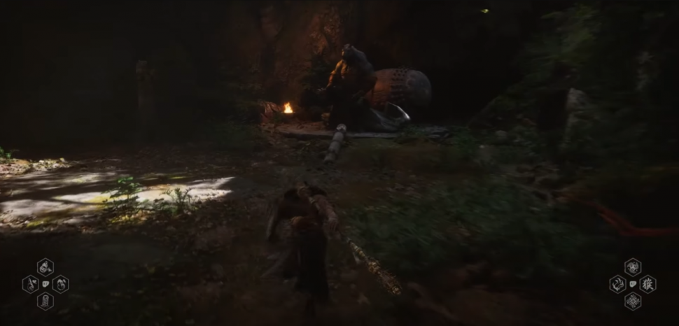 Продолжайте играть в главу 4 Black Myth Wukong, пока не получите доступ к святилищу Средней Лощины в Паутинной Лощине. Направляйтесь вправо от святилища и продолжайте двигаться вперед, пока не дойдете до факела слева.