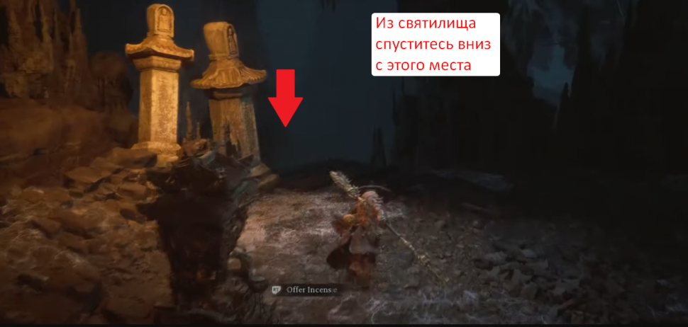 Как только вы появляетесь в святилище, идите по единственному пути прямо. Продолжайте идти до самого низа, это долгий путь. Бегите, пока не доберетесь до самого дна, где много врагов и есть несколько трещин в лаве на полу.