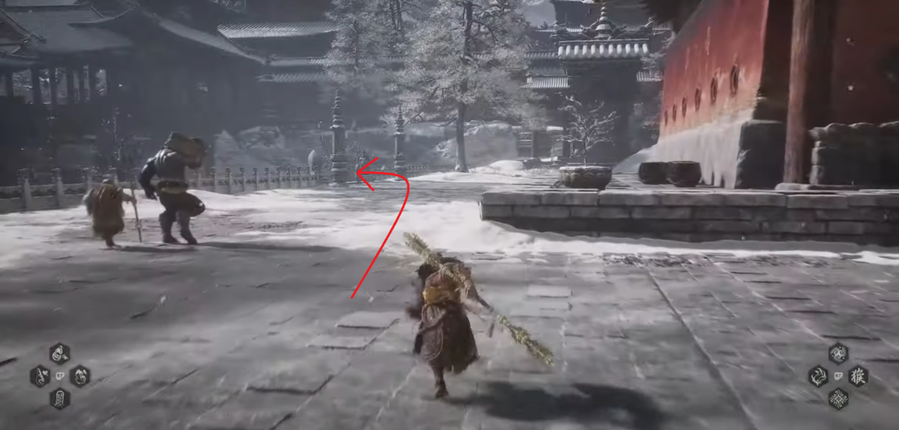 Когда вы начнете третью главу Black Myth Wukong, вам не сразу удастся найти Лошадь Гуаи. Пройдите основную часть сюжета, пока не получите доступ к Новому храму Громовержца. Из святилища при входе в храм пройдите через главный вход и мимо боковой статуи. Выйдите на внешнюю сторону храма и продолжайте идти вперед.