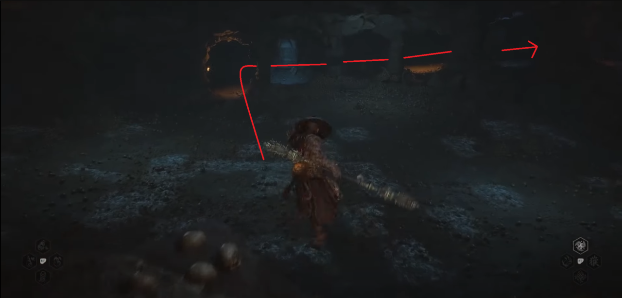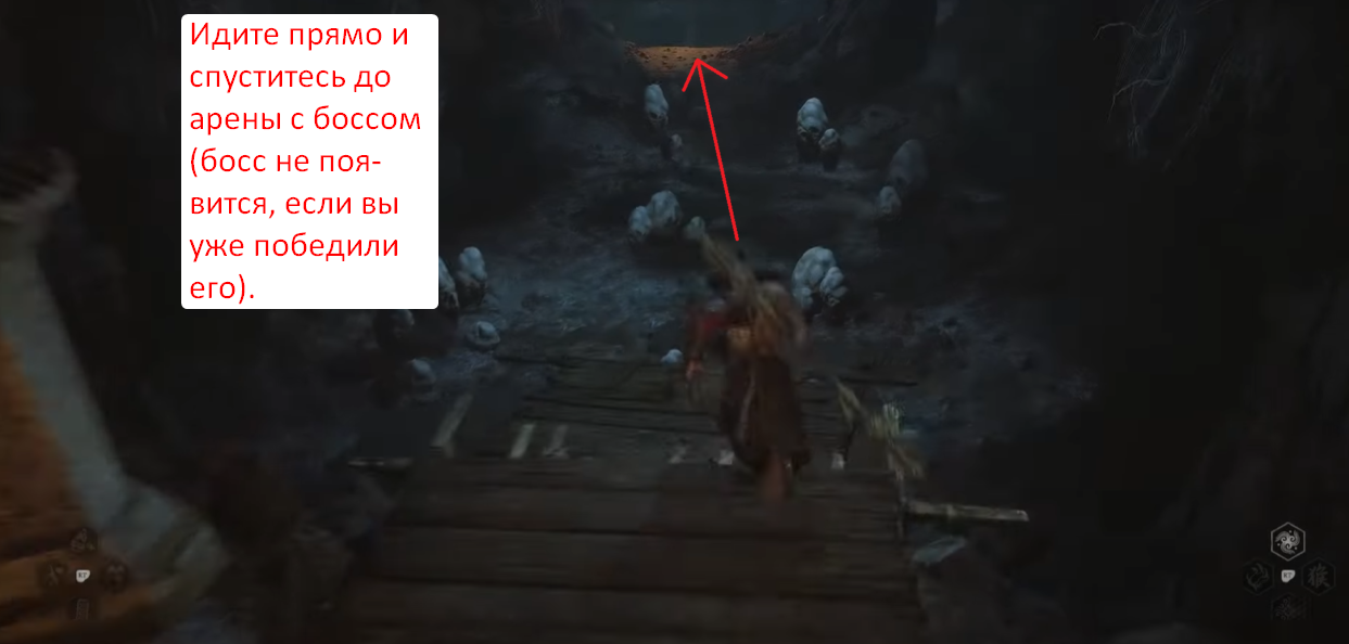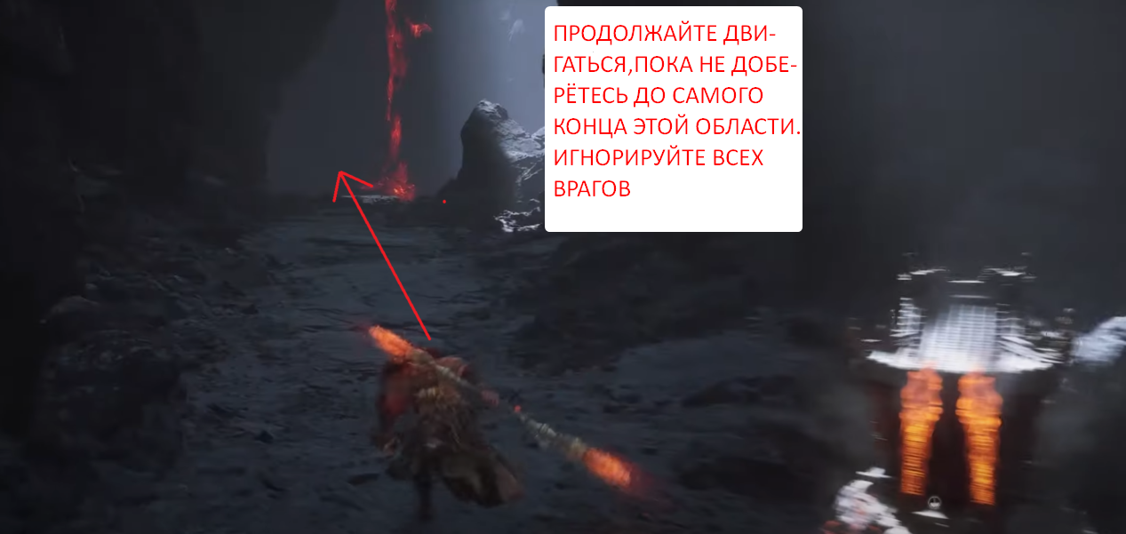 Как только вы появляетесь в святилище, идите по единственному пути прямо. Продолжайте идти до самого низа, это долгий путь. Бегите, пока не доберетесь до самого дна, где много врагов и есть несколько трещин в лаве на полу.