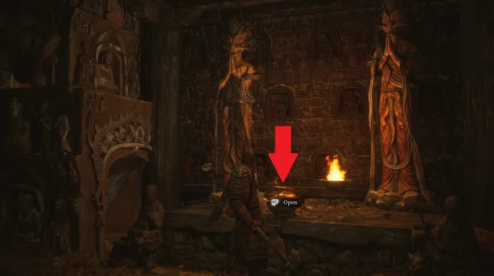 Гора Черного Ветра | Пилюля Небесного Нефритового Лотоса #1: После победы над Лин-Суй-Цзы в храме Гуаньинь пройдите через храм на другую сторону арены босса, а затем сверните налево. На столе вы увидите небольшой золотой сундук, в котором лежит пилюля Небесного Нефритового Лотоса.