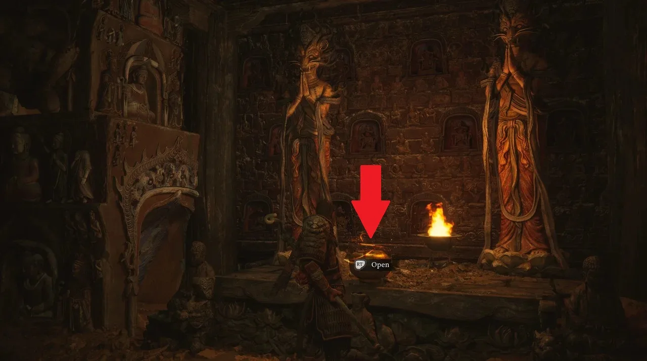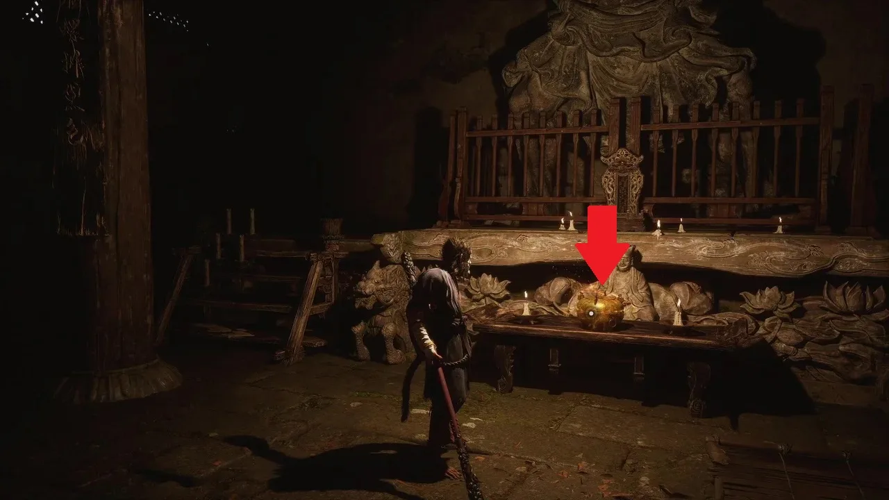 Гора Черного Ветра | Пилюля Небесного Нефритового Лотоса #1: После победы над Лин-Суй-Цзы в храме Гуаньинь пройдите через храм на другую сторону арены босса, а затем сверните налево. На столе вы увидите небольшой золотой сундук, в котором лежит пилюля Небесного Нефритового Лотоса.